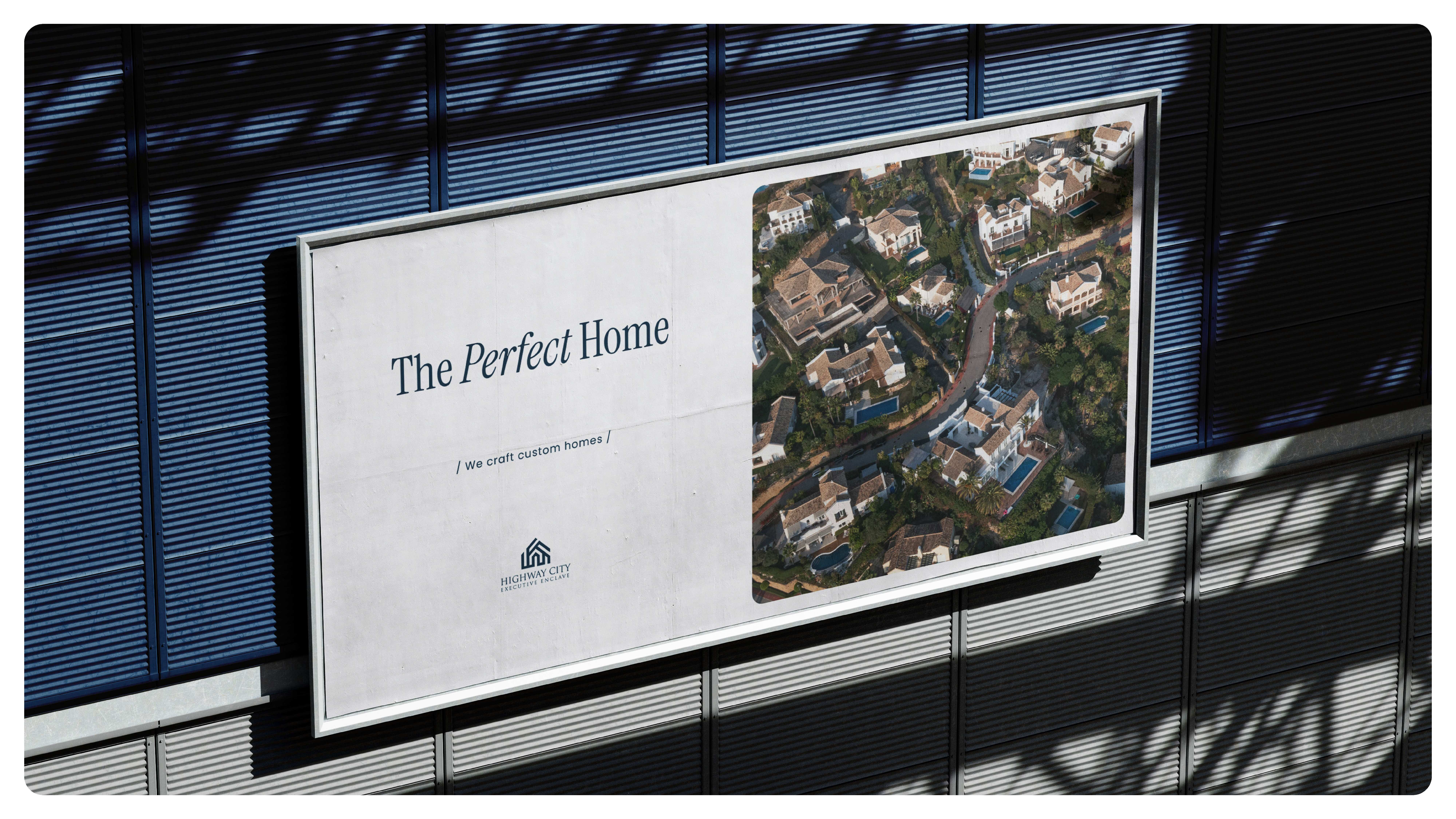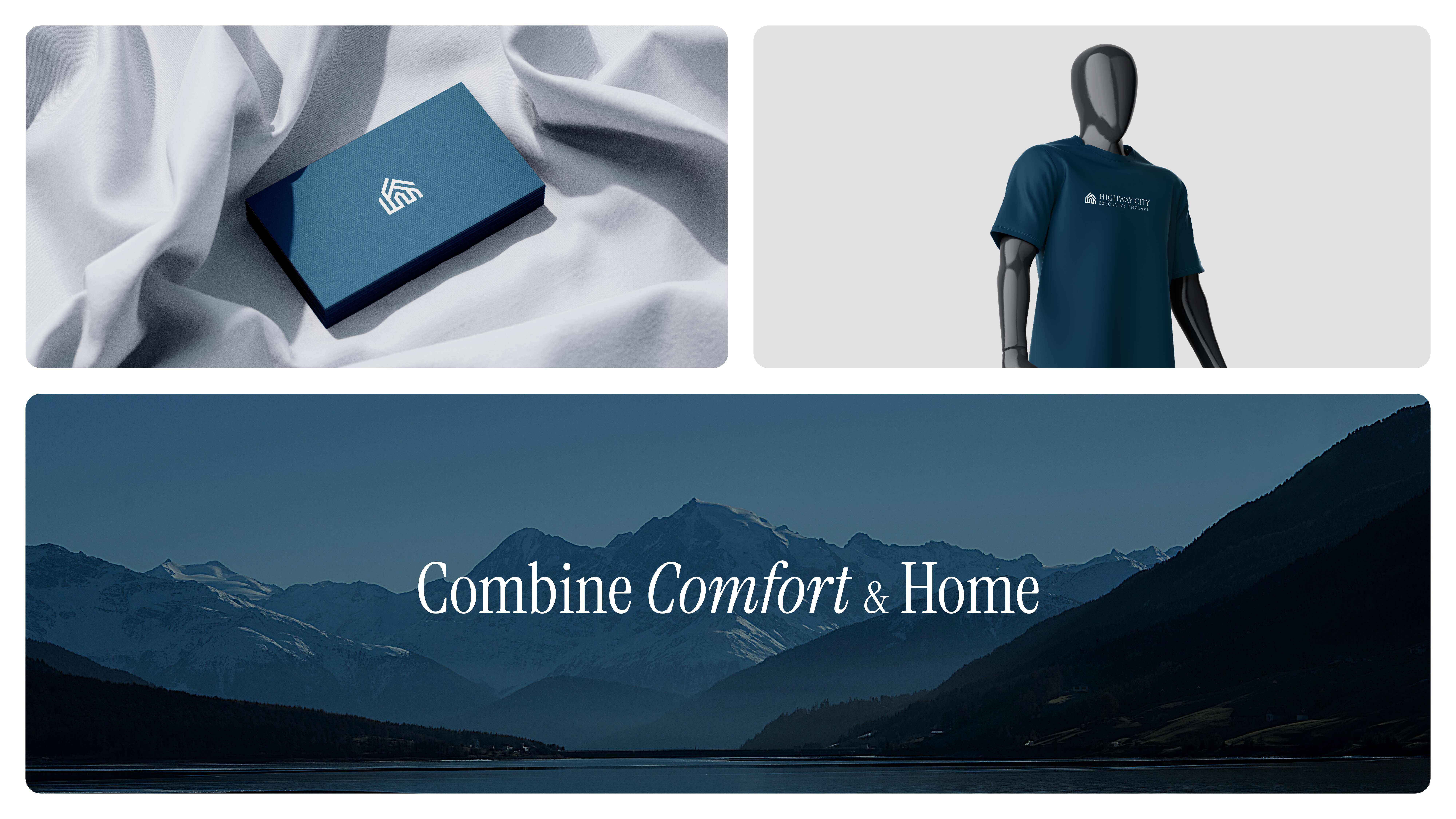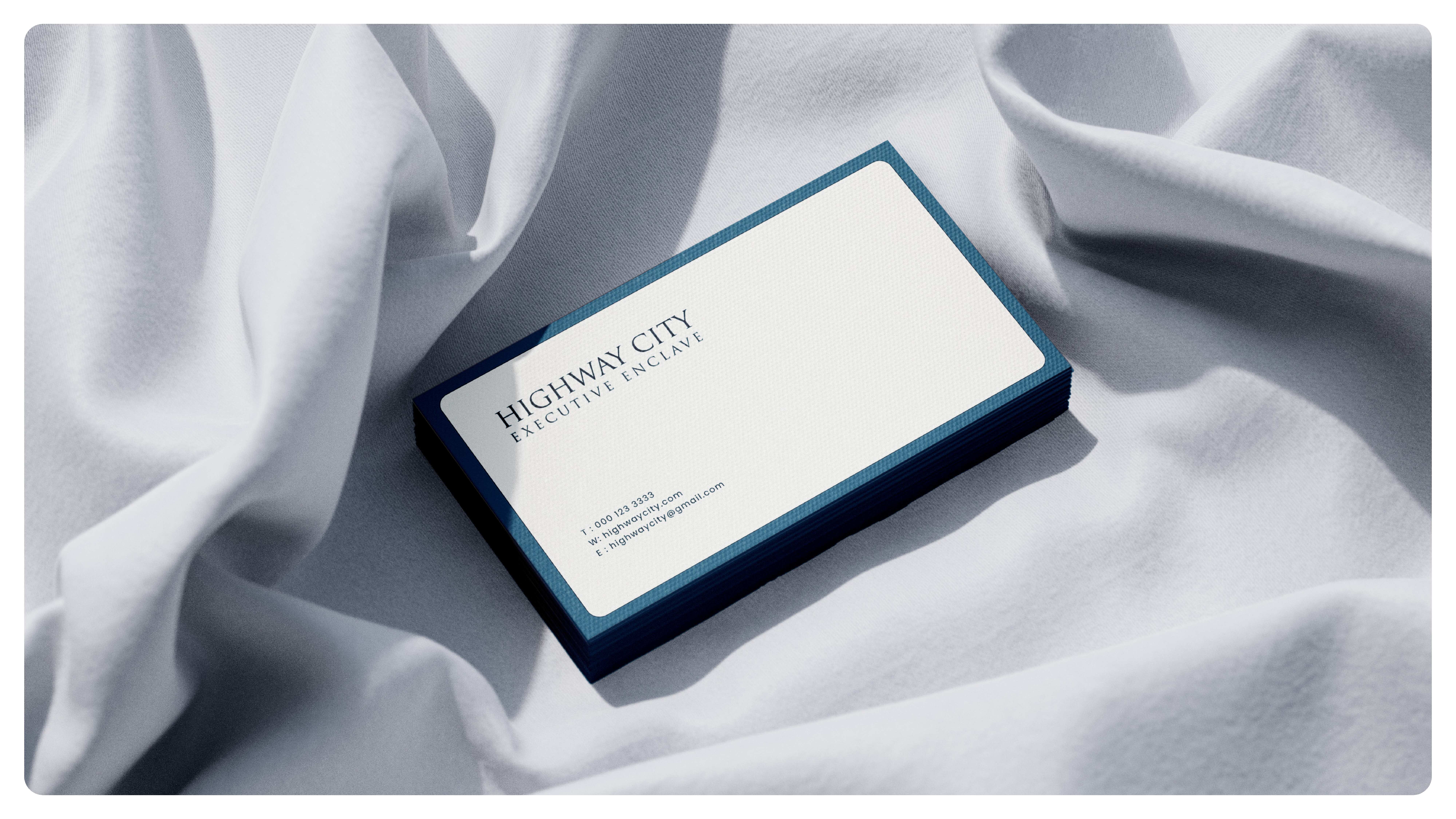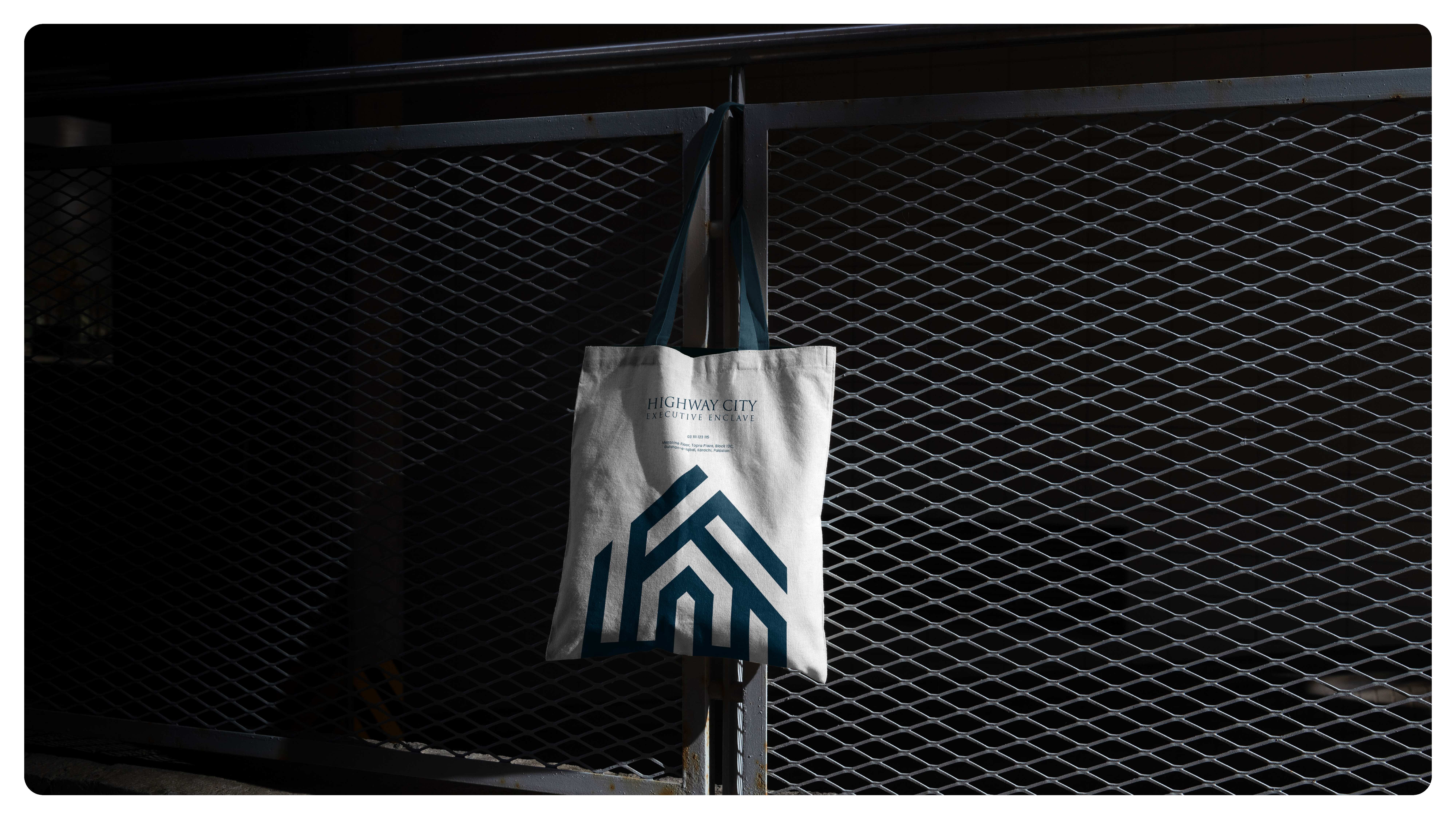 The Highway City Executive Enclave branding project is designed to establish the development as a premium, modern real estate venture that offers a superior living environment. The project uses a minimalist and elegant design approach, with a logo that symbolizes luxury and sophistication. The brand's visual identity is consistently applied across multiple marketing materials, including business cards, billboards, tote bags, and promotional banners, ensuring a strong and cohesive presence.
